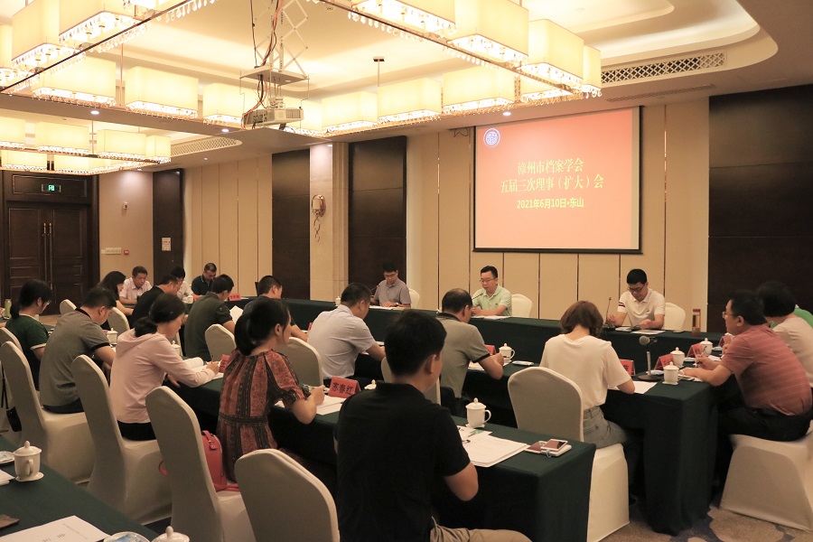 6月10日,漳州市档案学会五届三次理事(扩大)会议在东山召开。市委办室务会成员、市档案局局长、市档案馆馆长黄镇平出席会议并讲话。市档案学会理事长、常务理事、理事、秘书长、副秘书长,团体会员单位、理事单位负责人、兼合式支部党员等30多人参加。