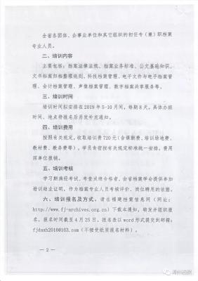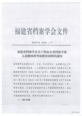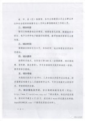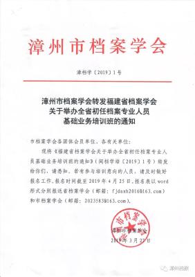 现将《漳州市档案学会转发福建省档案学会关于“两类培训”的通知》转发如下,请相关单位和人员做好培训准备。