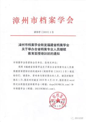 漳州市档案学会转发福建省档案学会关于“两类培训”的通知