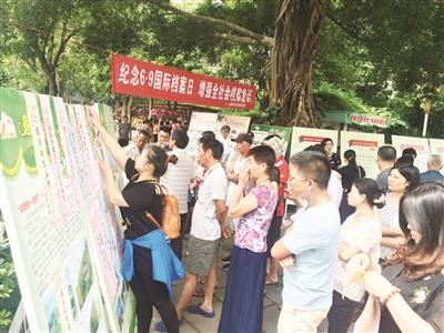 四是联合其他部门单位开展档案日宣传活动进公园。漳州市档案局联合芗城区档案局、龙文区档案局、市城建档案馆、闽南师范大学档案馆于6月9日当天在中山公园开展宣传活动。通过展出专题展板、发放宣传材料、现场接受法律法规咨询、档案法律知识有奖竞猜灯谜等形式,吸引一大批群众前来观展、咨询、猜灯谜。共展出45块展板,发放《中国的世界记忆遗产》《档案违法案例选辑》《田园都市 生态之城》等档案宣传材料近2000份,悬挂宣传横幅2条、灯谜100条。本次活动提高广大市民的档案意识,增强档案法制观念。